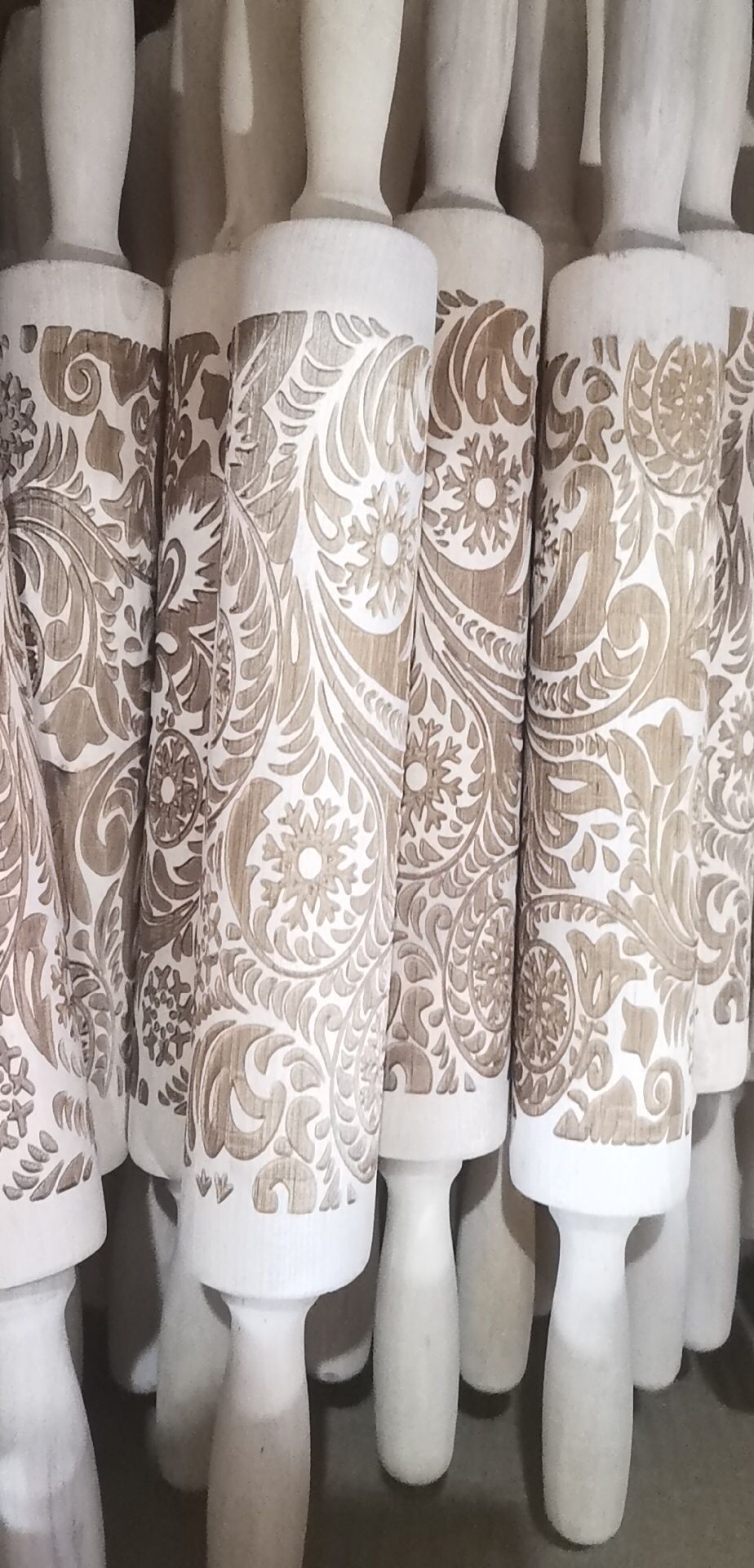 Yes—deeply engraved wood embosses crisply; just flour lightly, no sticking.