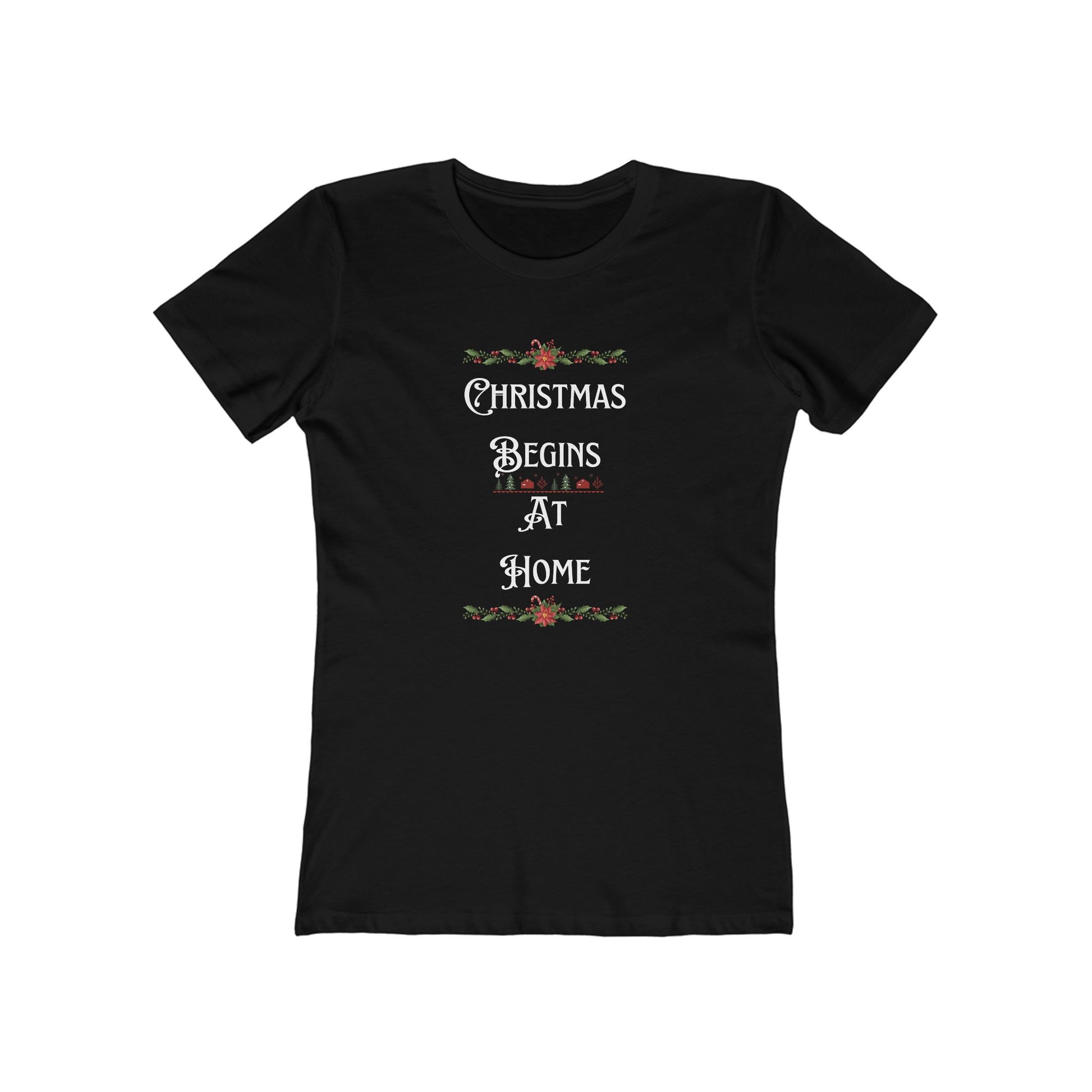Christmas Sayings Women's Boyfriend Tee, Festive Holiday T-Shirt, Xmas Starts at Home, Fun & Cheerful Tee, Womens Christmas Top
